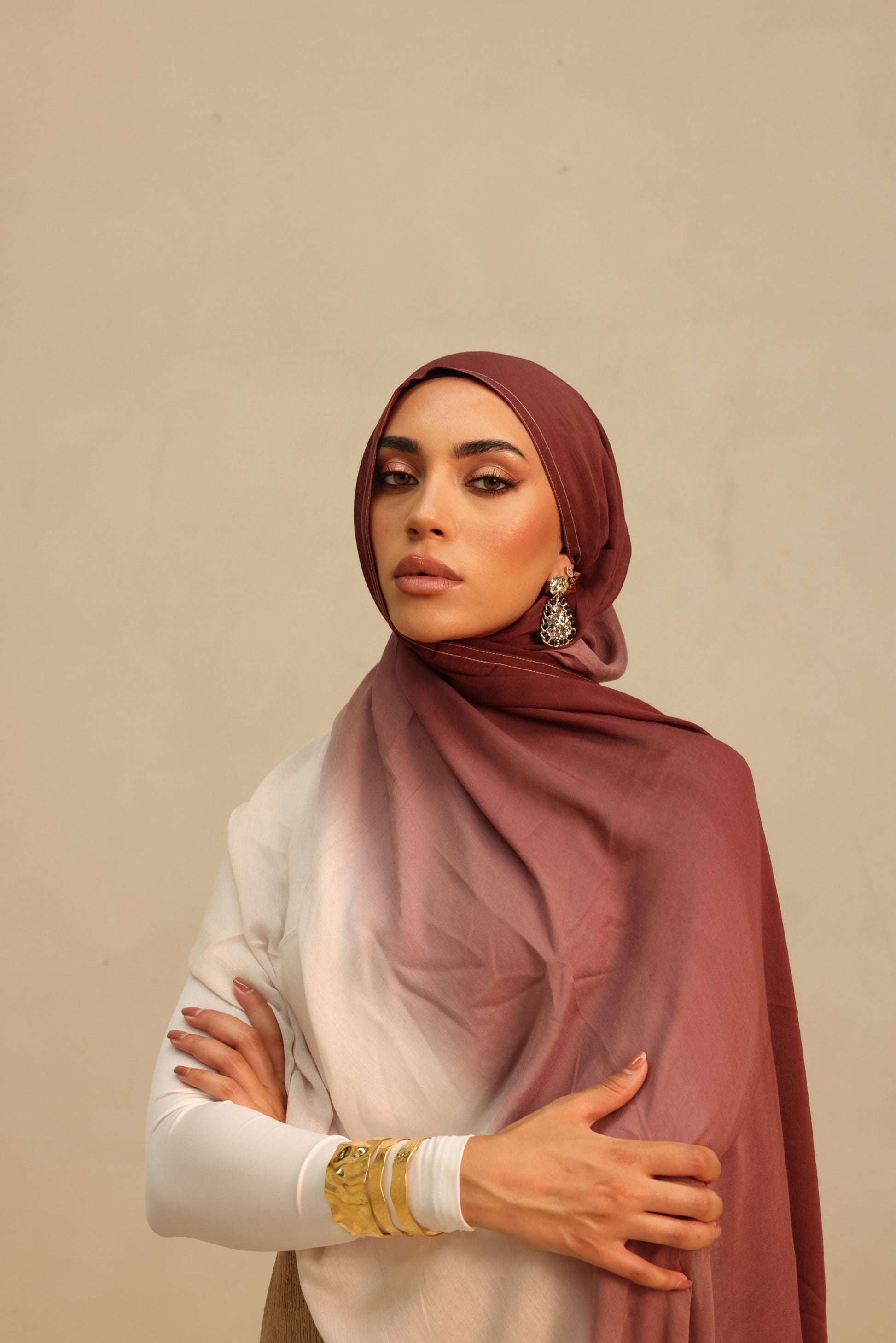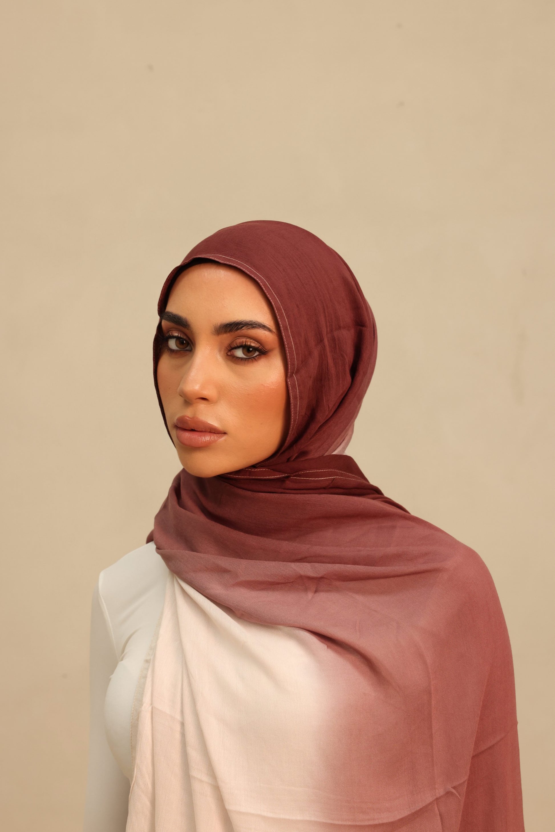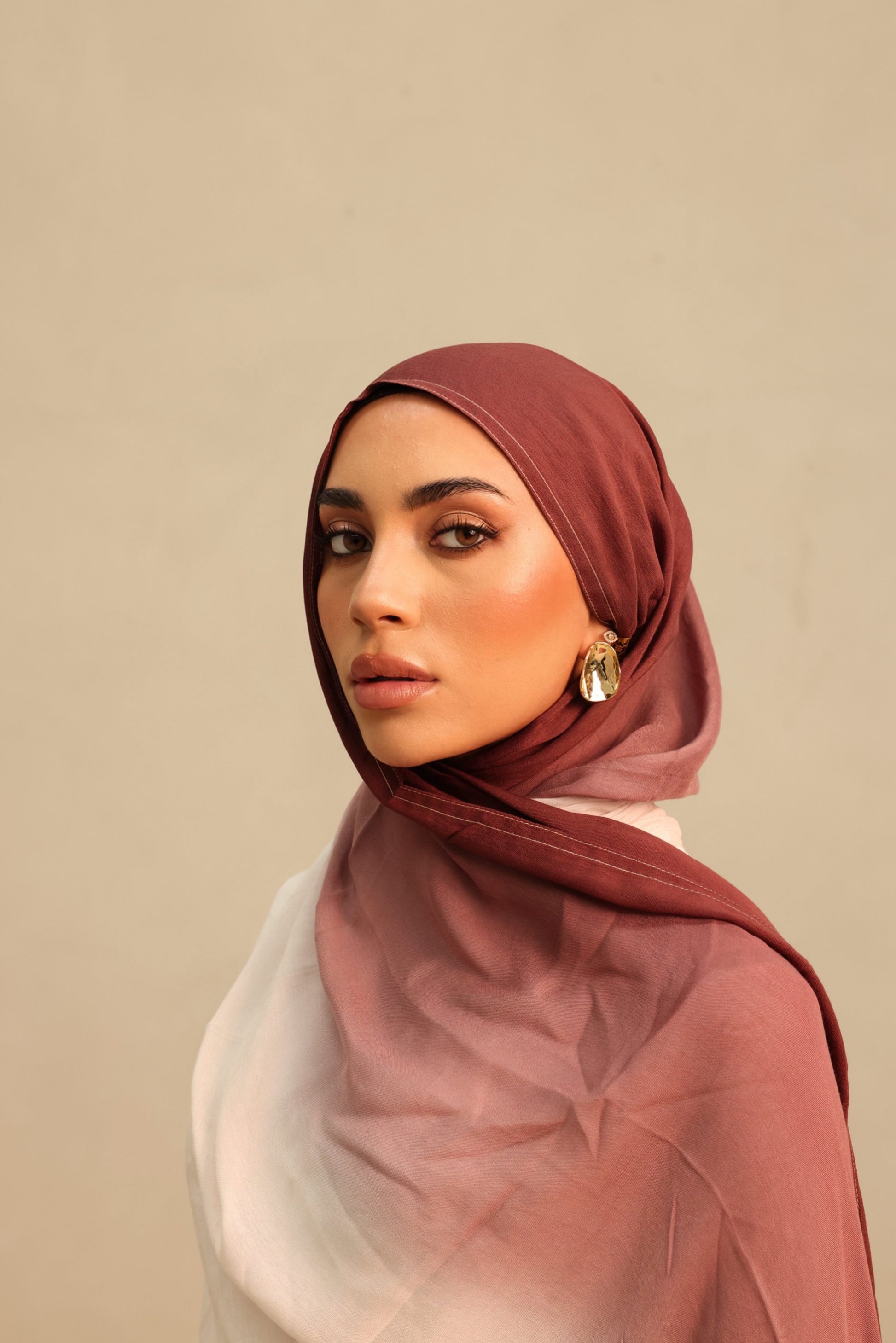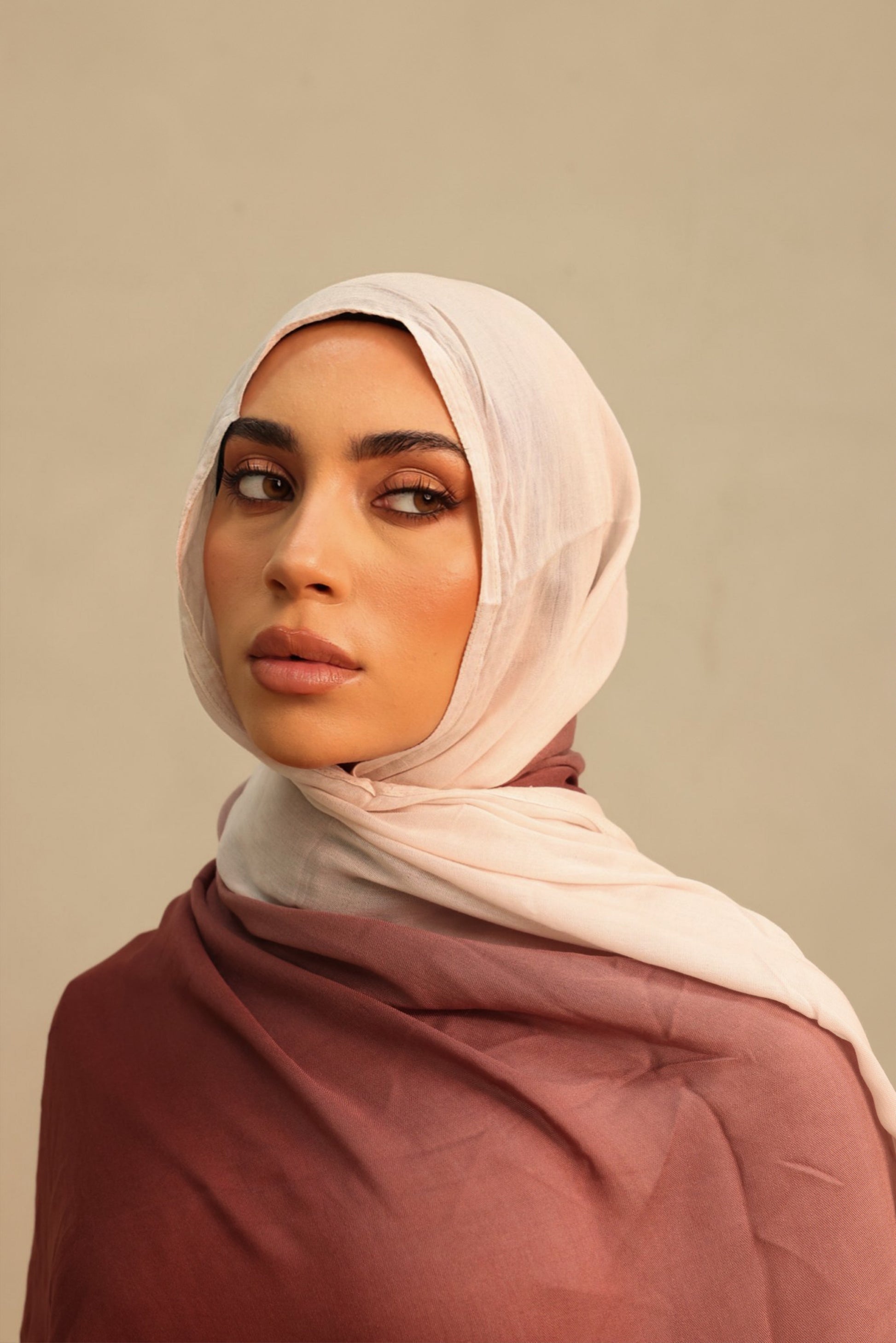 The beautiful dip dye hijab via Mod Squad features a lightweight viscose fabric & can be worn both ways. You can decide on which side frames your face.