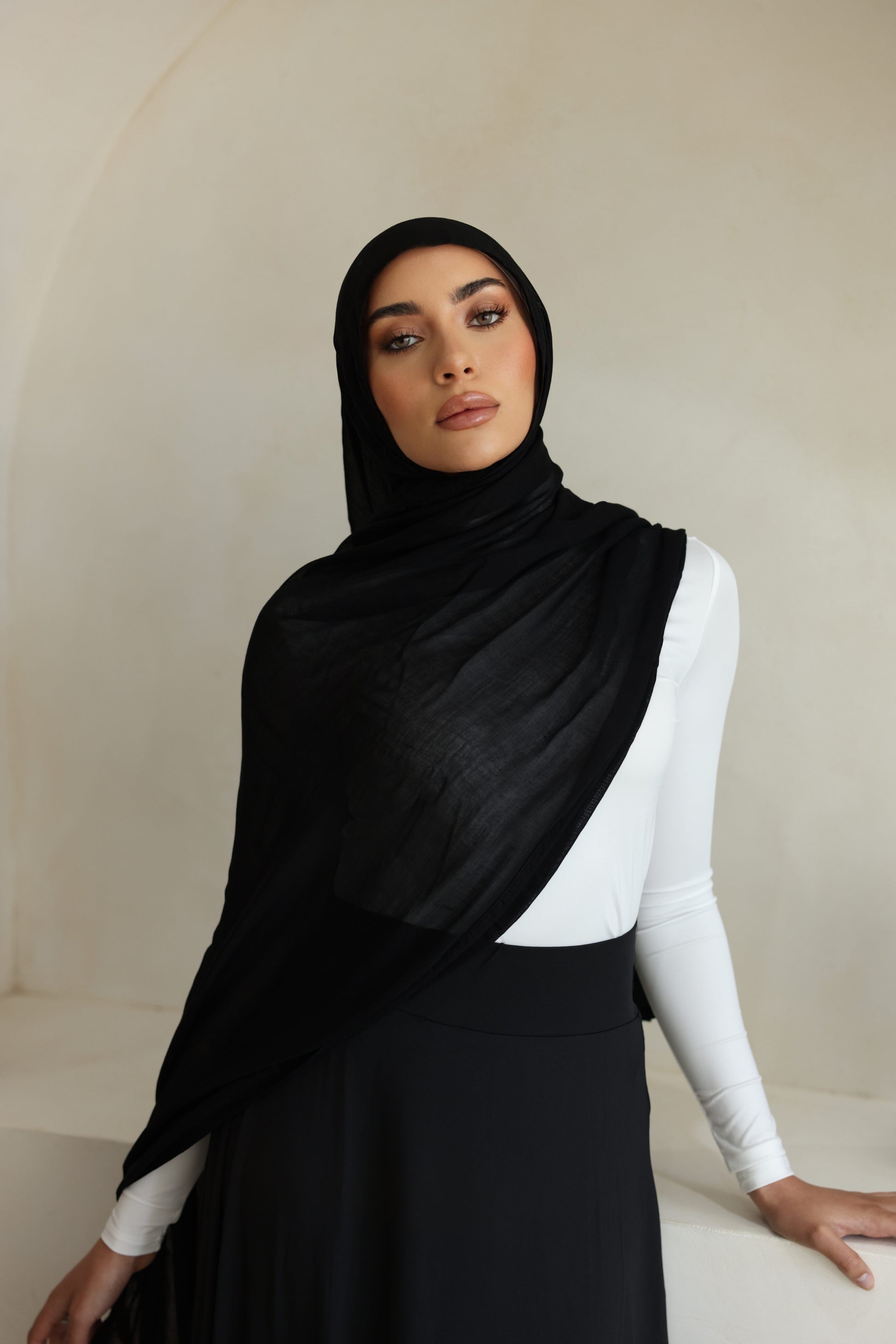 The beautiful Luxe Double Stitch Hijab via Mod Squad features a lightweight breathable rayon/cotton fabric. Produced in a luxurious fabric allows the hijab to have the most effortless drape whilst maintaining its luxe appeal.