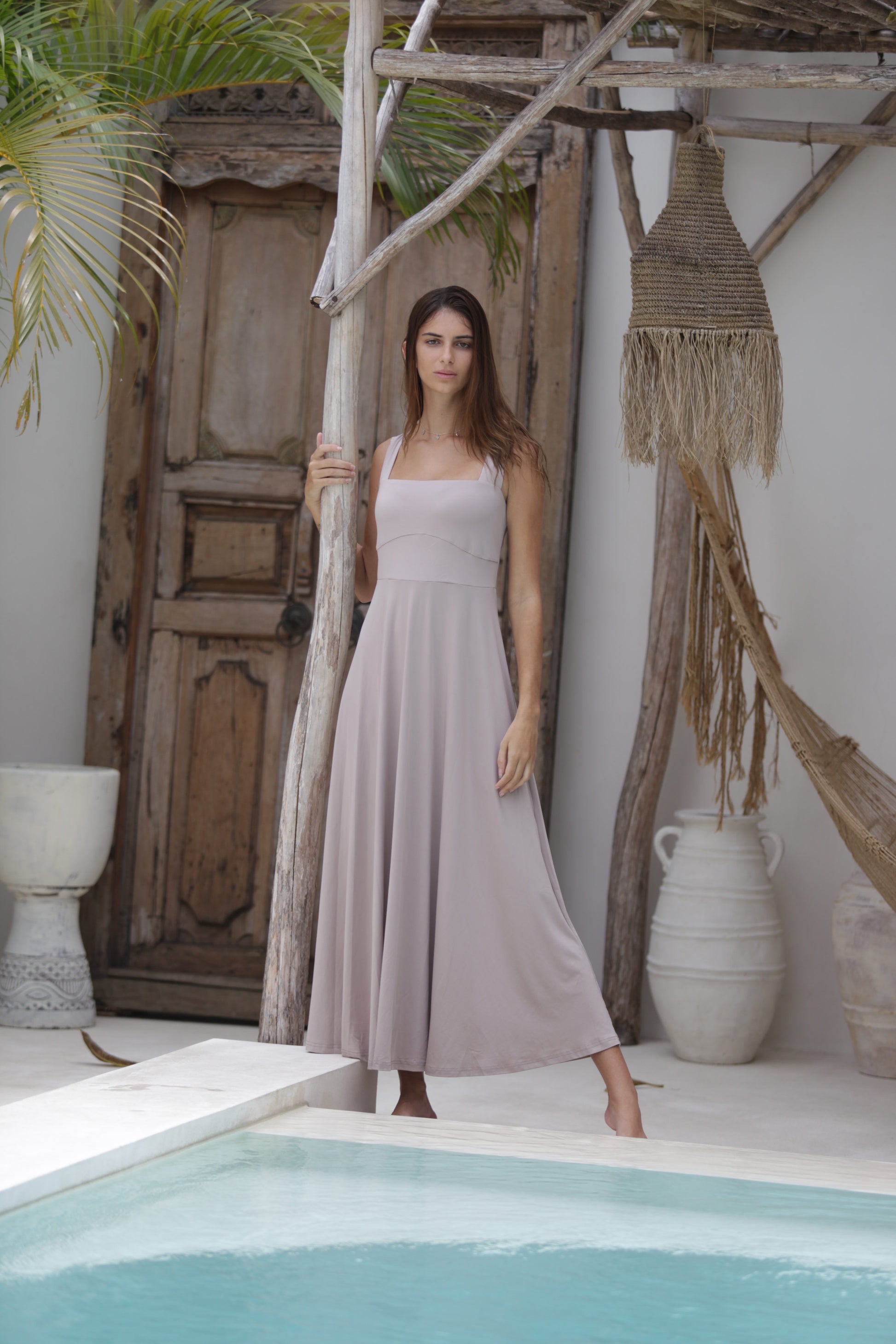 Luxe Box Neck Dress Fawn