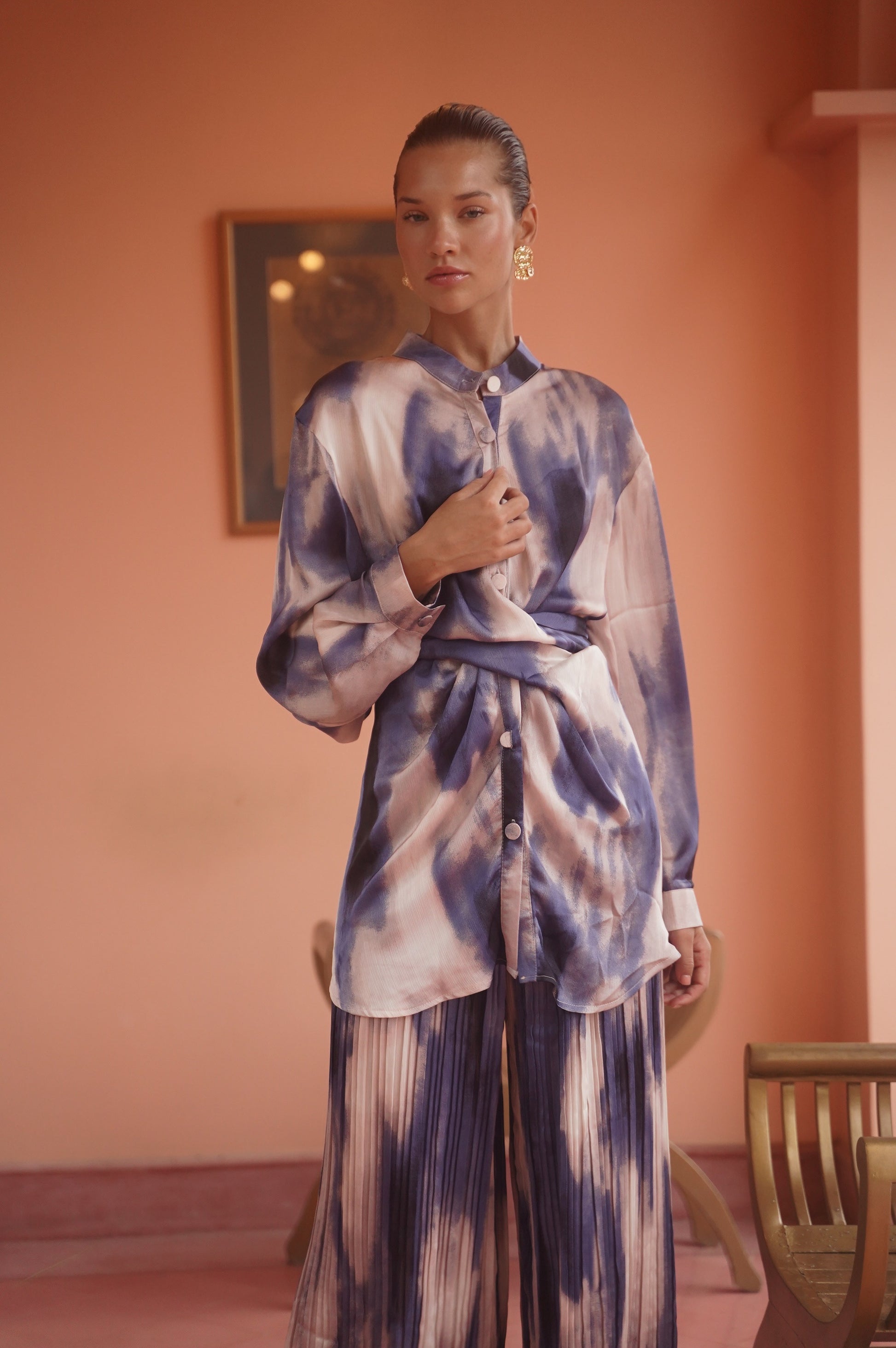 Indulge in the elegance and luxury of our Marrakech Set. Crafted from a soft silk blend, this set features an elastic waist on the pants and an adjustable waist on the blouse for the perfect fit. Enjoy the light weight feel and stylish, sophisticated design. Elevate your wardrobe with this exclusive set.