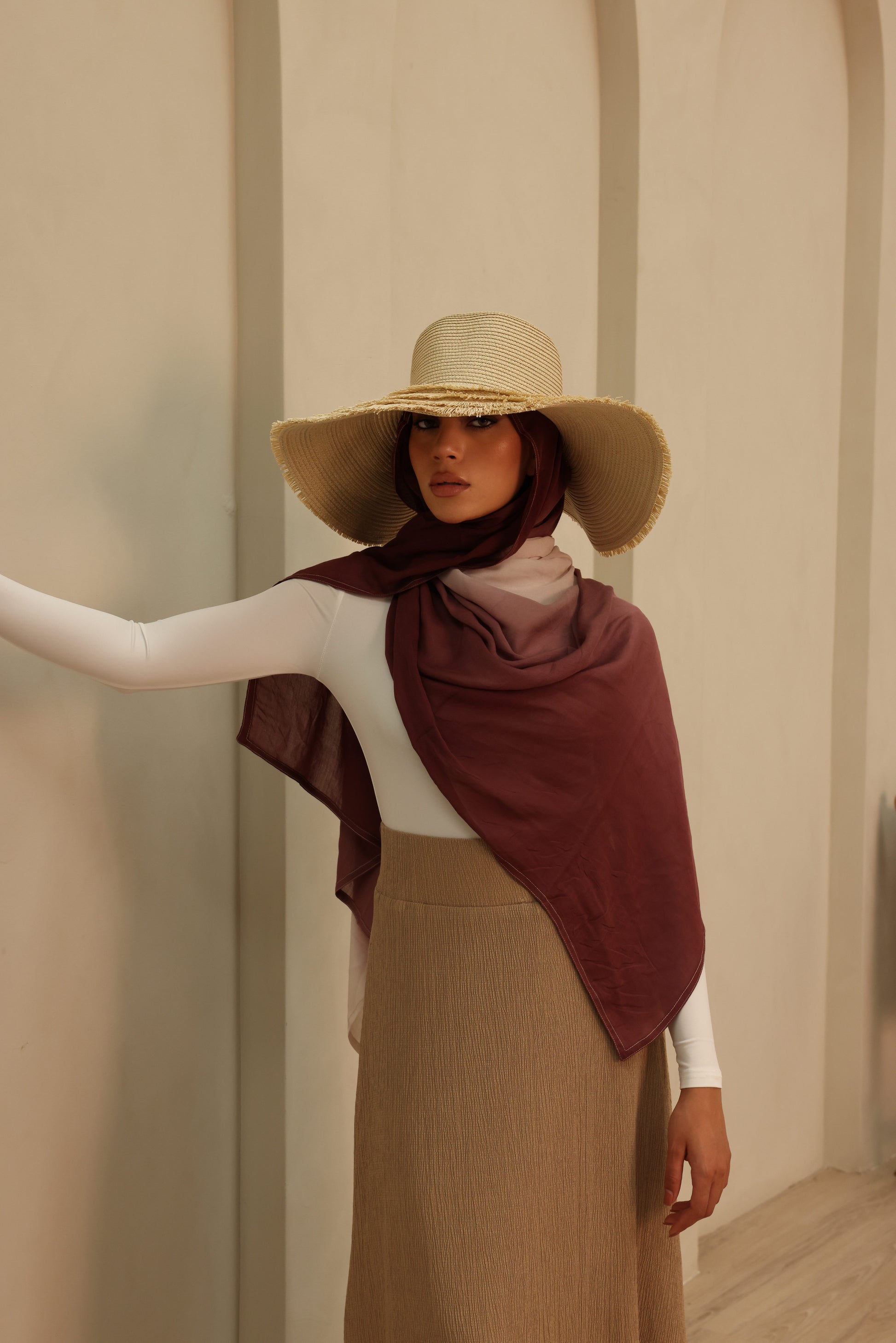 The epitome of luxury with the Claudia Wide Brim Hat. Featuring a 57cm base which allows for a low bun and hijab layered underneath.