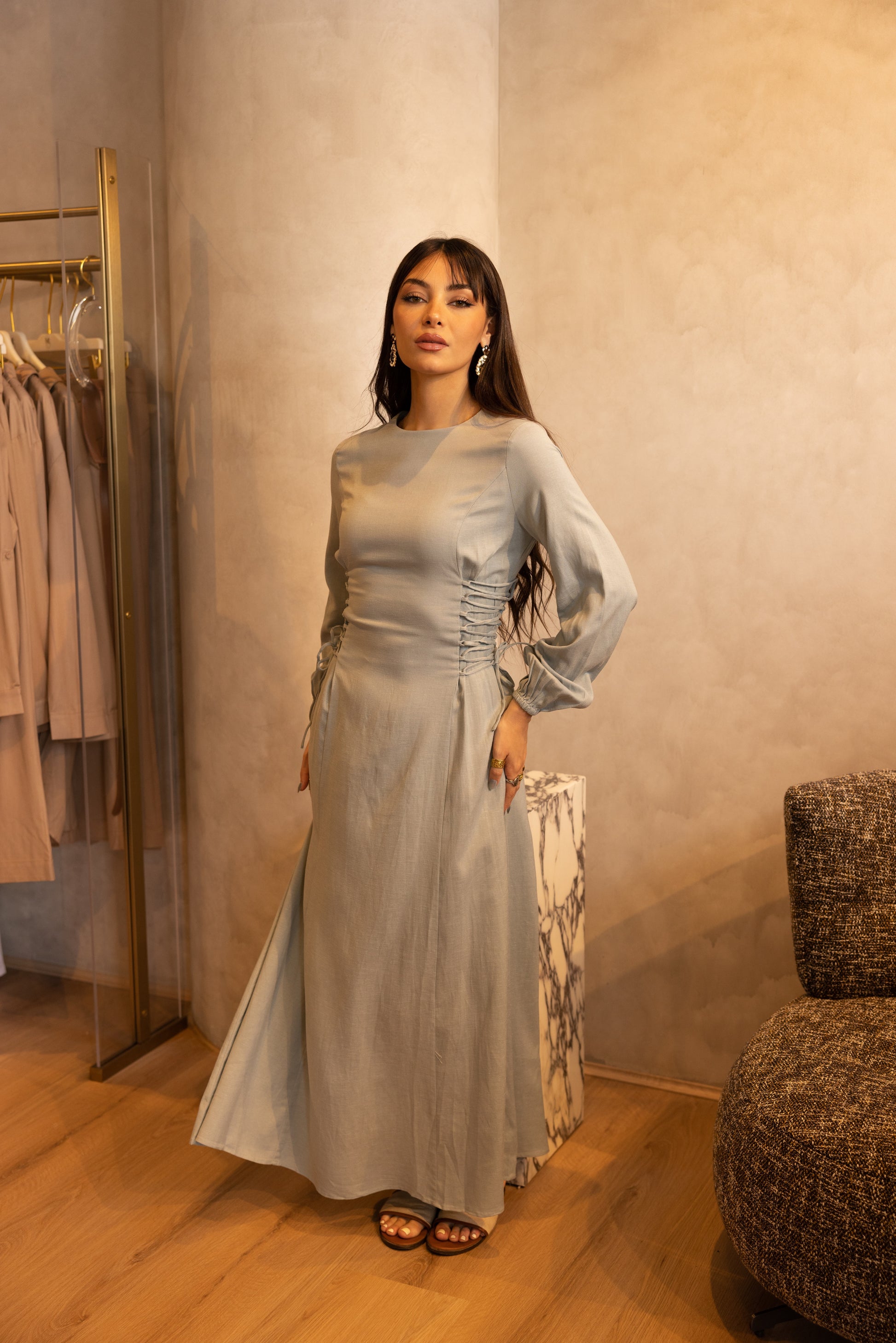 Crafted from a blend of 70% rayon and 30% linen, the Elara Side Tie Dress exudes elegance and style. This sophisticated dress is a must-have addition to your wardrobe, offering a perfect balance of comfort and chic design.
