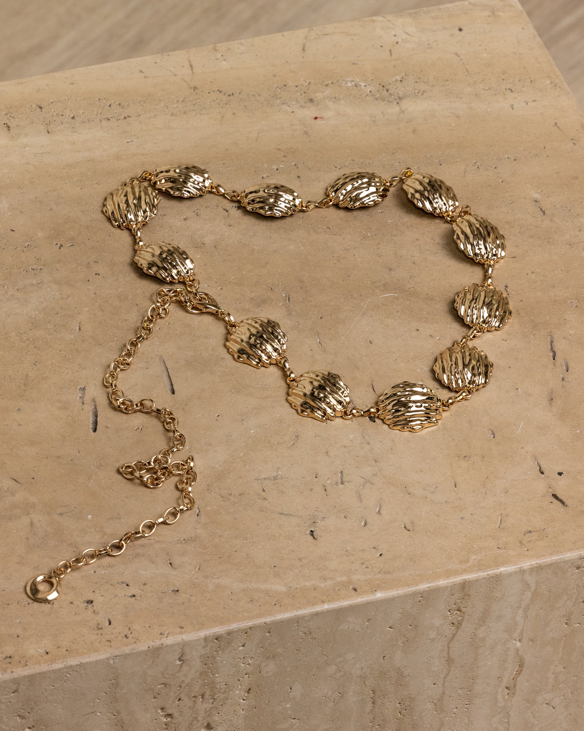 Summer lover belt is derived of links of metal shells making this belt the perfect statement belt to elevate your fit.